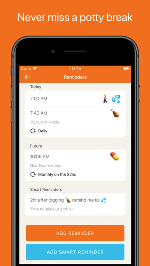 Don't wait too long to take your puppy out to the bathroom! Set up recurring reminders to never forget.