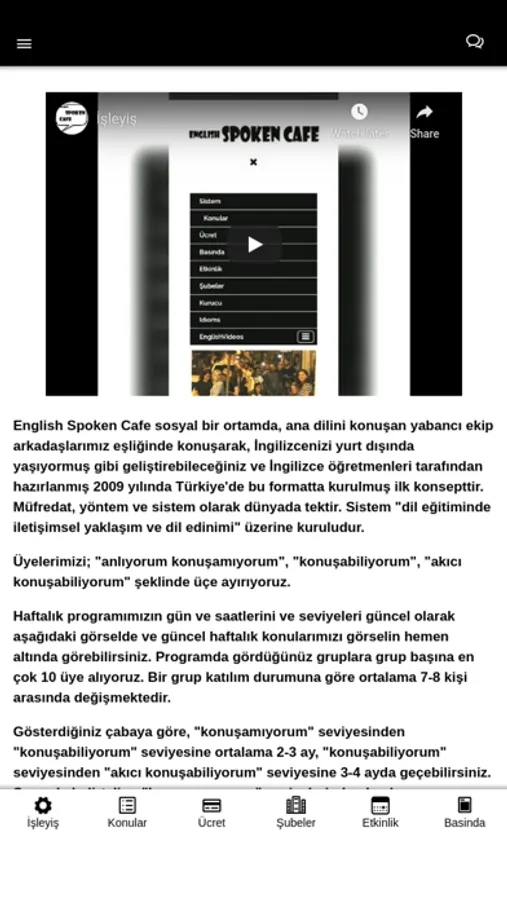 -Uygulama tüm şubelerimizde bir nevi Coursebook (ders kitabı) görevi görür. Canlıdır. Konuları, konu videoları, içerik video-görselleri sürekli güncellenir.
