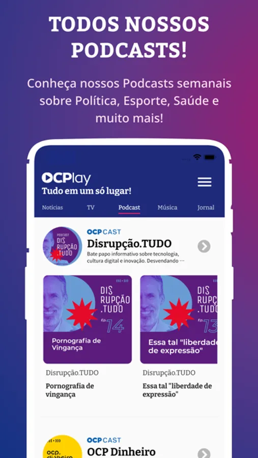 O aplicativo OCPlay é ideal para você que quer ficar bem informado com as principais notícias da Rede OCP.