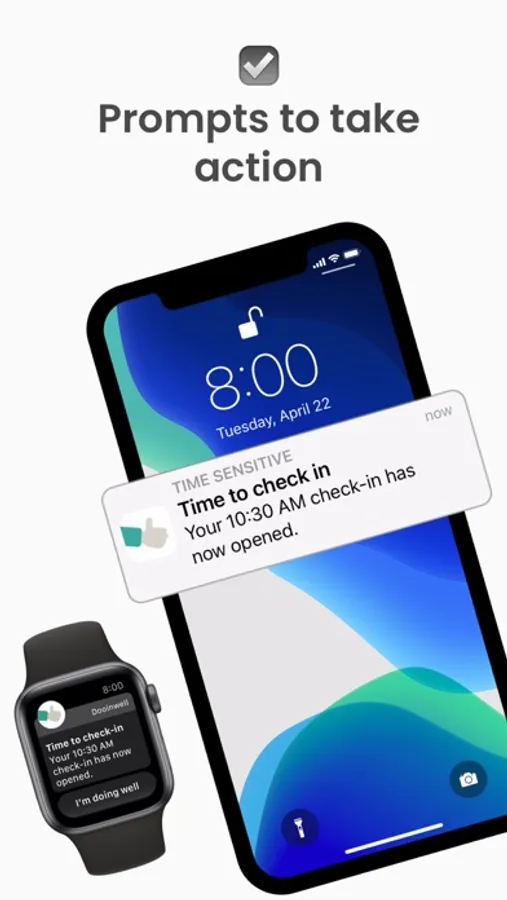- Smart alerts: you get an alert if something raises doubt on your parent safety. Dooinwell alerts are delivered to your iPhone, iPad, and Apple Watch, and - when critical - they display and play a sound even on a device that is in Silent or Do Not Disturb mode.