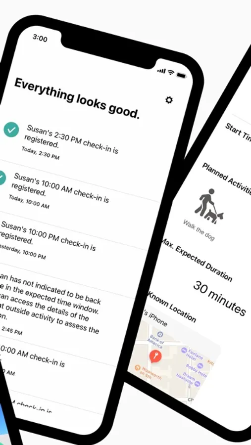 - SAFETY CHECK-INS: Your parent has a new routine: checking in. A few times a day, during specific time slots, your parent submits an in-app check-in.