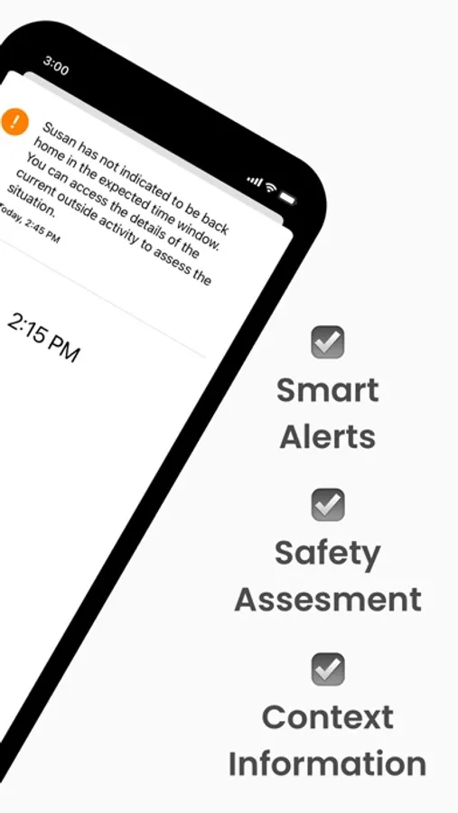 - Well informed, only when you need to: in addition to sending an alert, a suspicious situation momentarily unlocks access to information that helps you assess whether there are reasons to worry. Access the latest known status and location of your parent's devices (only until the situation gets resolved), and discover what your parent was planning to do if he registered an outing.