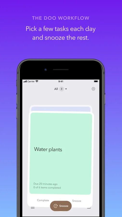 Pick a few tasks each day and snooze the rest. Doo helps you create more consistent, sustainable habits. Reduce your anxiety and become a more productive you, one card at a time.