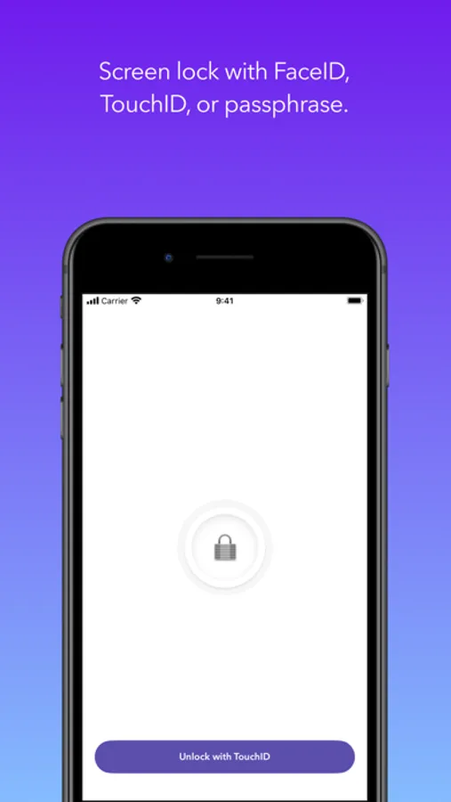 • Screen lock with FaceID, TouchID, or passphrase
