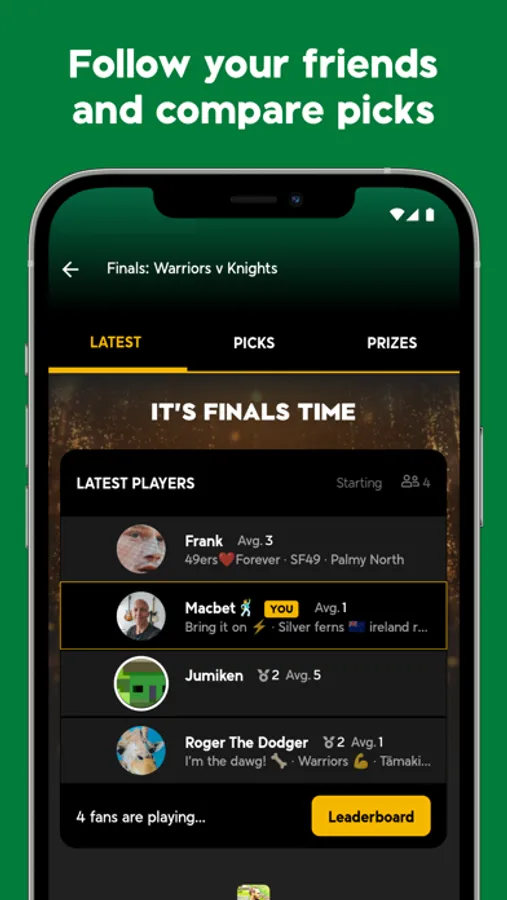 Choose your game, make a few easy predictions and maybe answer a trivia question. New questions drop daily, powered by real talking points, news and social. Once the match starts, load up the live leaderboard and watch your points add up as the action unfolds! Every correct answer gains points, and the player with the most points wins! Simple! Although prizes are nice, the best part if challenging your friends and family to find out who is the true superfan.