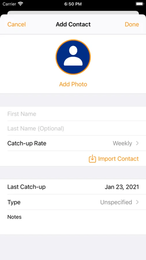 If granted access to your address book, Kontaktr allows you to get in touch with your contacts directly from the app. This makes it super easy to log your catch-up afterwards.