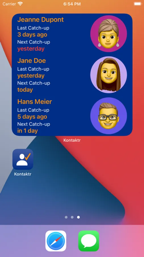 Your privacy is very important to me and gathering user data is not part of my business model. Kontaktr does not collect nor submit any data. All data are stored locally on your iOS device.