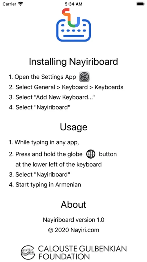 Nayiriboard allows you to type and spellcheck in Armenian inside any app. It provides a comprehensive vocabulary and supports both dialects of Armenian.