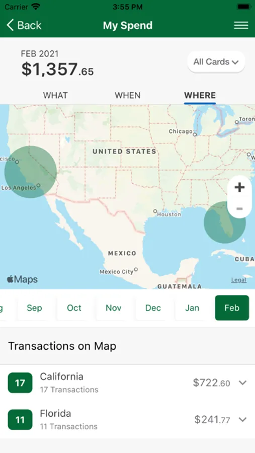 • Clearly see your purchases with cleaned up merchant names, location on a map and store info.
