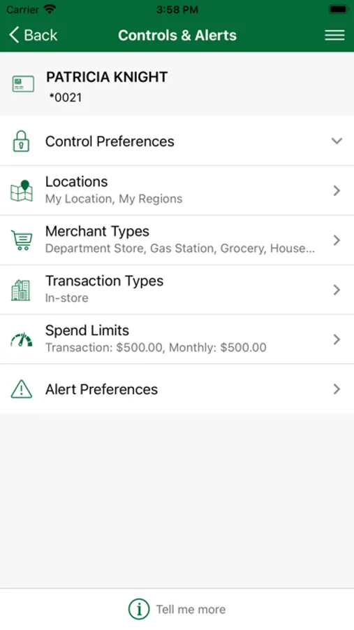 • Stay in control with real-time alerts and controls. Lock your card, set spending limits and determine where your card can be used.