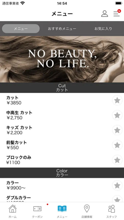 サロンで使用できるお得なクーポンが、アプリを通して発行され、ご利用いただけます。