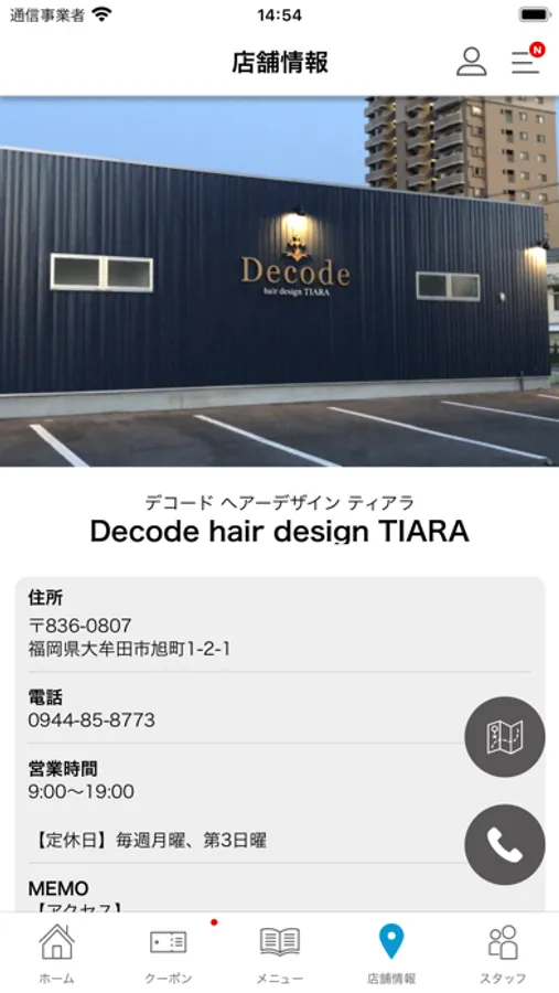 公式アプリを通して、『Decode hair design TIARA(デコード ヘア デザイン ティアラ)』の新着情報やお得な情報を、リアルタイムで受け取ることができます。