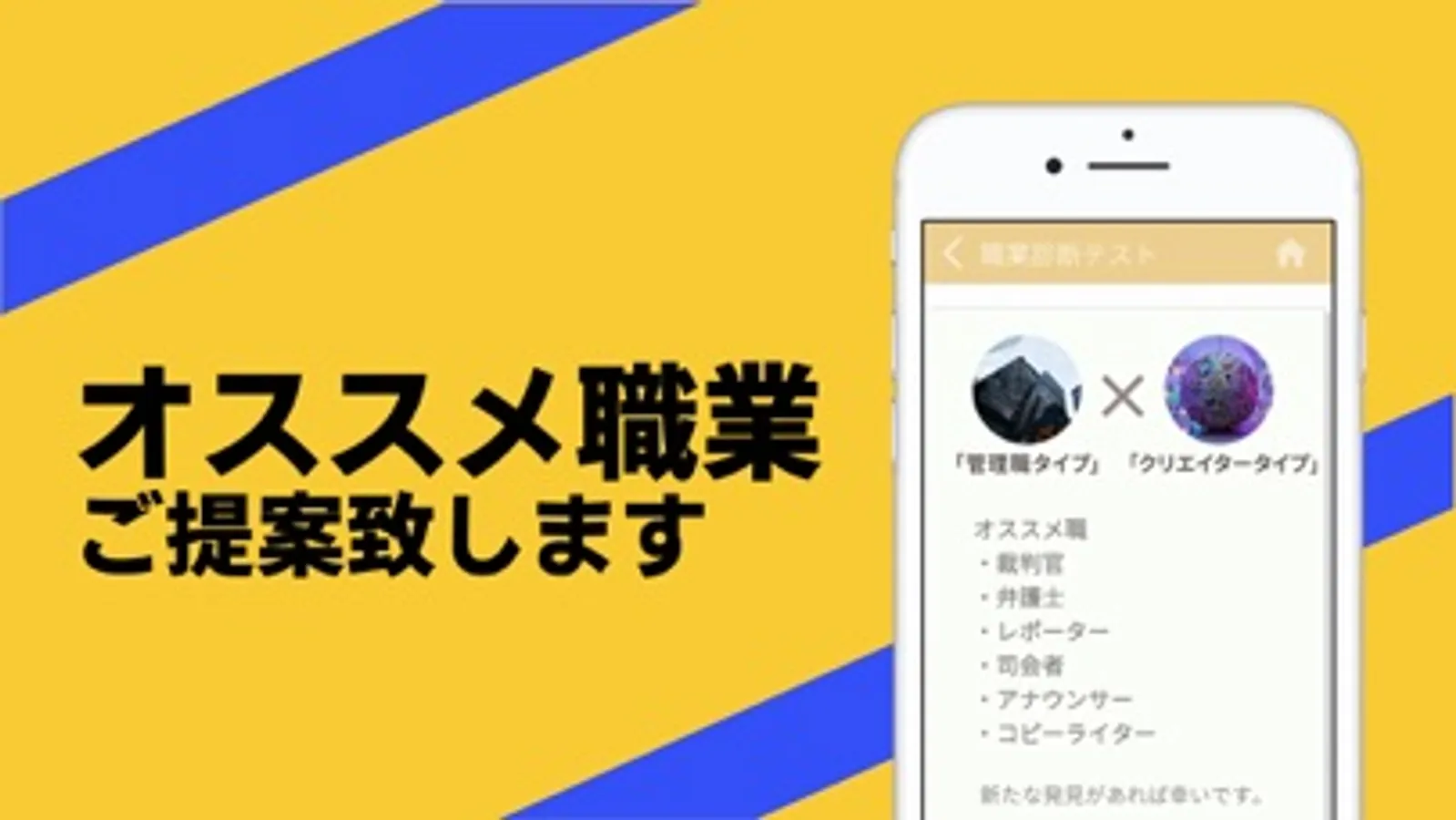 回答結果からあなたの「性格タイプ」と「オススメ職業」を診断します。