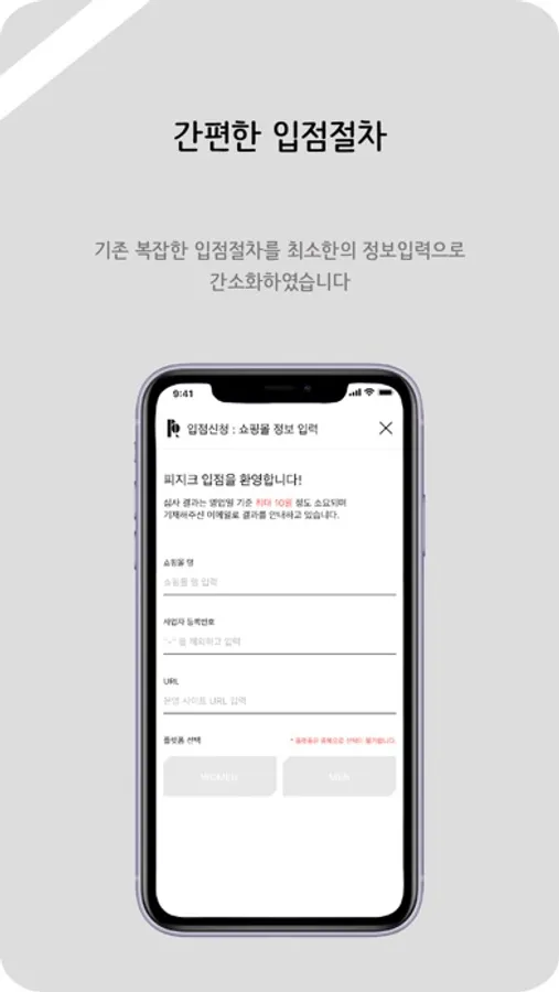 피지크 셀러 버전은 입점사들의 간편한 입점절차와