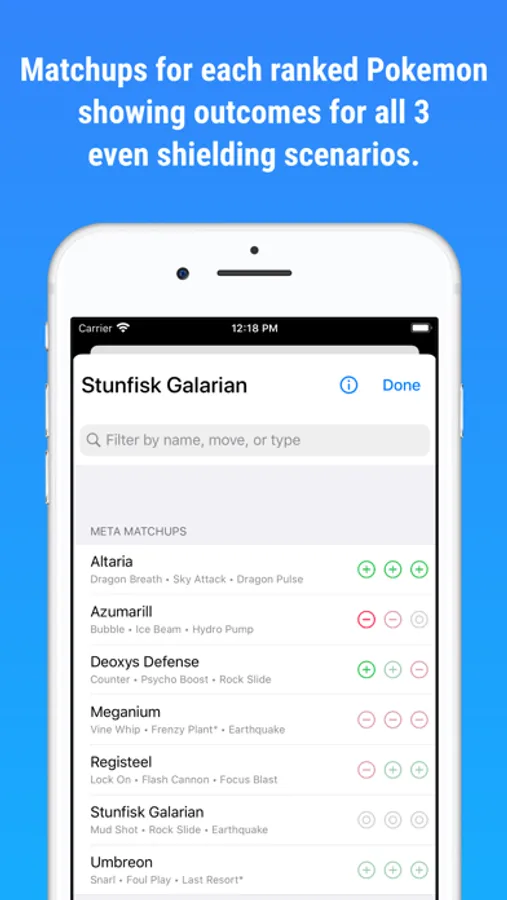 View rankings for Great League, Ultra League, Master League, and some cups for the current Go Battle League season! Tap on a ranked Pokemon to see its matchups in even shielding scenarios against all other ranked Pokemon!