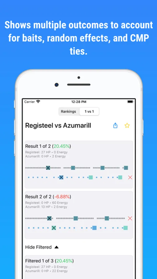 PVP IV Pro is a subscription service that removes ads, unlocks comparison battles, and allows you to have more than one custom meta at a time. These battles allow you to see all matchups that are different between two Pokemon. For example, you can see which matchups you win/lose by giving Play Rough to Azumarill instead of Ice Beam. Or, see which matchups are different between your IVs and the Rank 1 IVs.