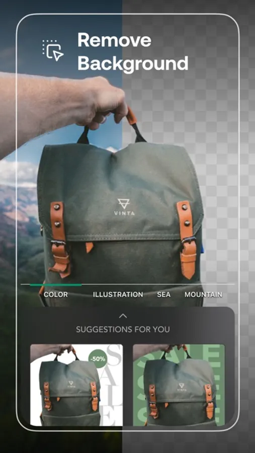 • Easily cut-out, remove background or transparent it and replace with a new one from our selective backgrounds or your own selections.