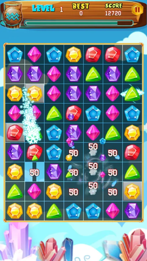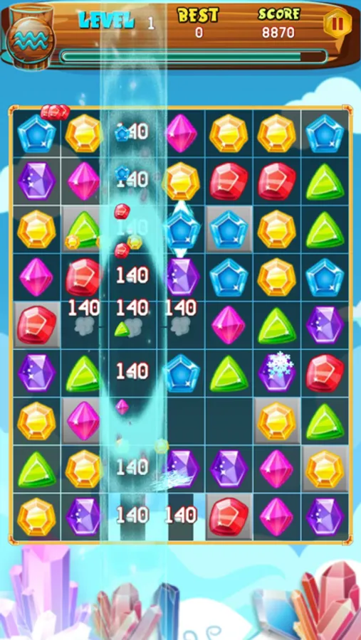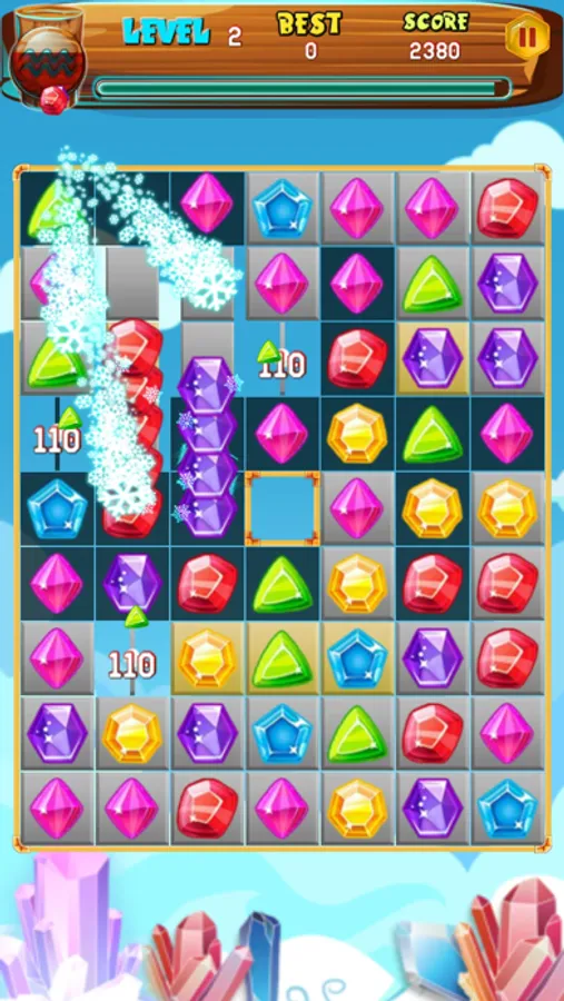 - Smash jewel next to destroy locked, frozen ice or petrified puzzles