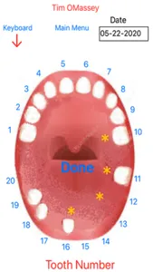 Extra technical information about teeth is included at the bottom of the the adult page. These predefined buttons can be used by a dentist, dental hygienist or you. When a tooth has been removed an X will marks its place in the graphic.