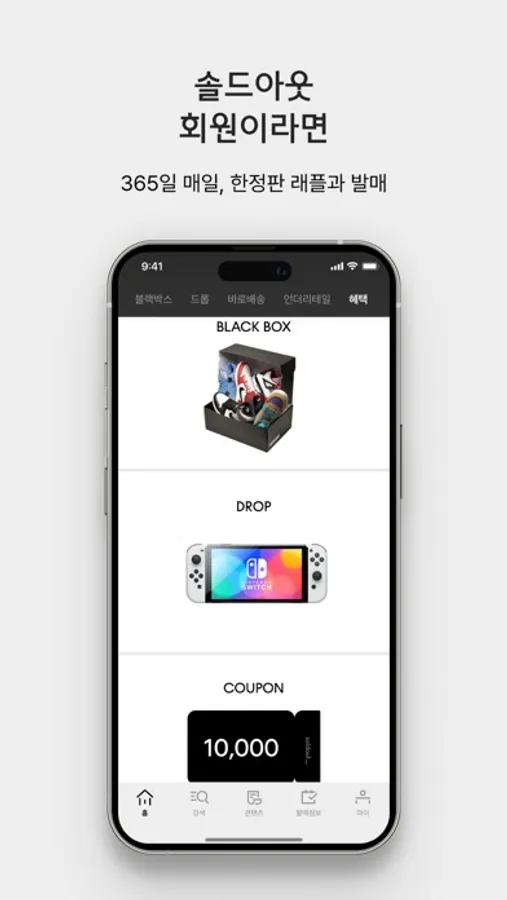 • 데일리 드롭: 매일 오전/오후 11시, 품절 상품을 구매할 수 있는 마지막 기회!