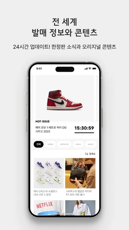 • 발매 정보: 실시간 업데이트되는 한정판 발매 정보와 응모하기