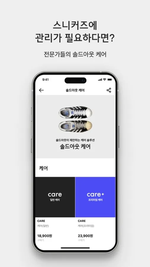 • 솔드아웃 케어: 앱에서 편안하게 접수하고 맡겨보세요. 국내 최고의 프리미엄 스니커즈 케어!
