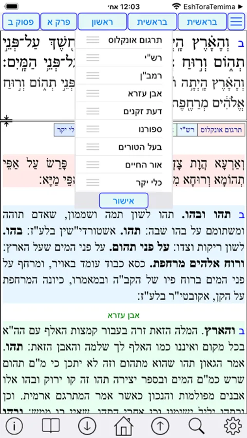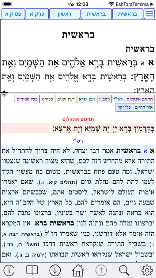 include Chumash, Targum Onkelos, Rashi, Ramban, Ebn Ezra, Daat Zkenim, Sforno, Baal Haturim, Or Hahayim, Kli Yakar.