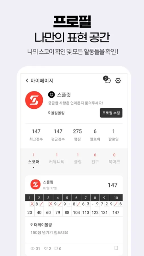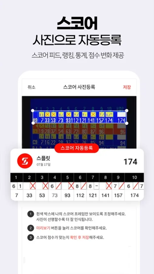 - 스코어 사진만 올리면 볼링스코어가 자동으로 등록되는 스플릿을 이용해보세요~