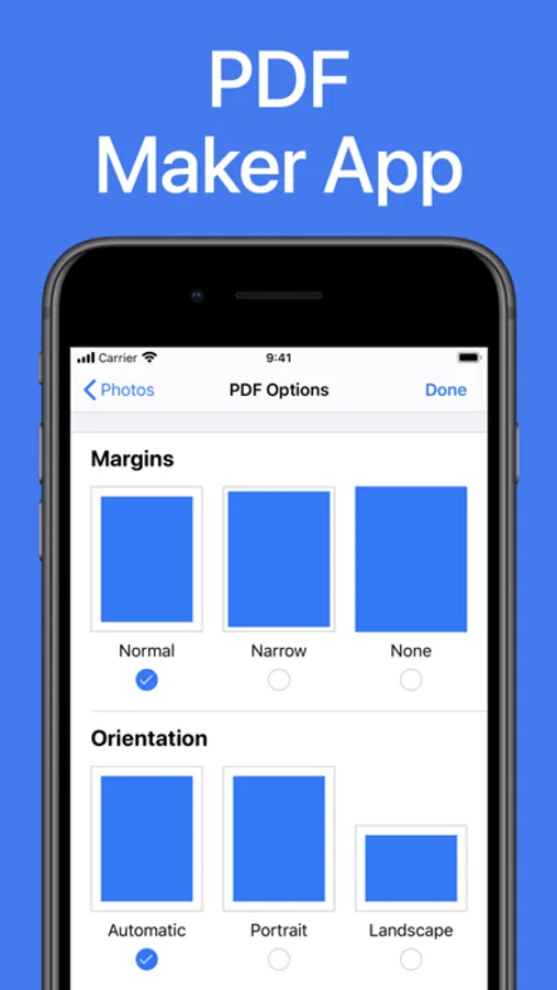This small PDF app makes it really easy for you to convert pictures to PDF files from your iPhone or iPad. Just open the app, select the images or take a picture with your camera and save it.
