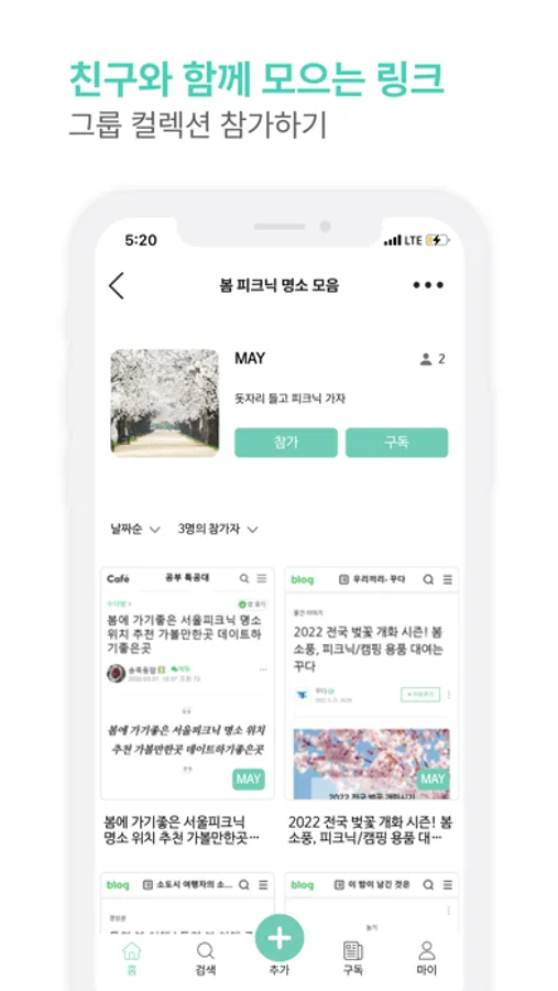 ④ 그룹/비공개: 초대받은 사람만 컬렉션에 참여해 함께 링크를 열람하고 저장할 수 있어요.