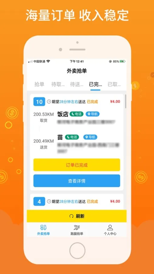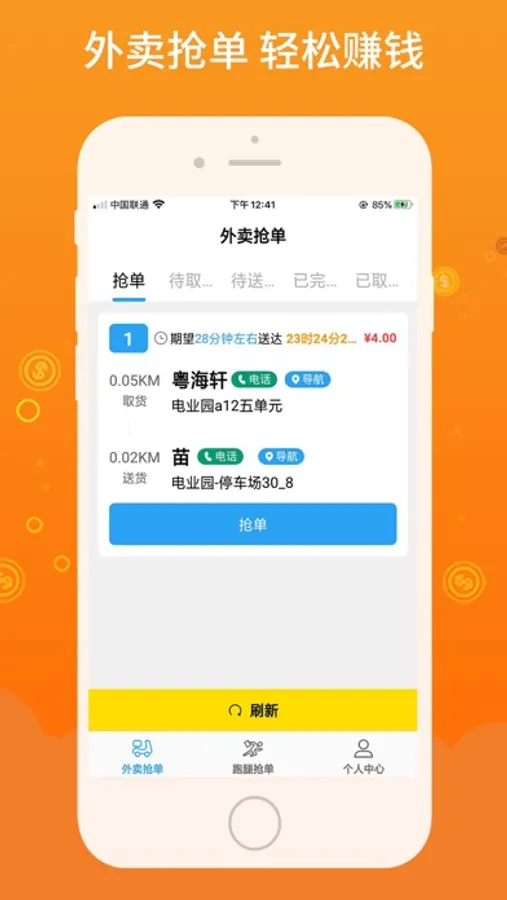 2.配送员可根据距离自己目前为止的远近和订单可获得收益,来决定是否抢单
