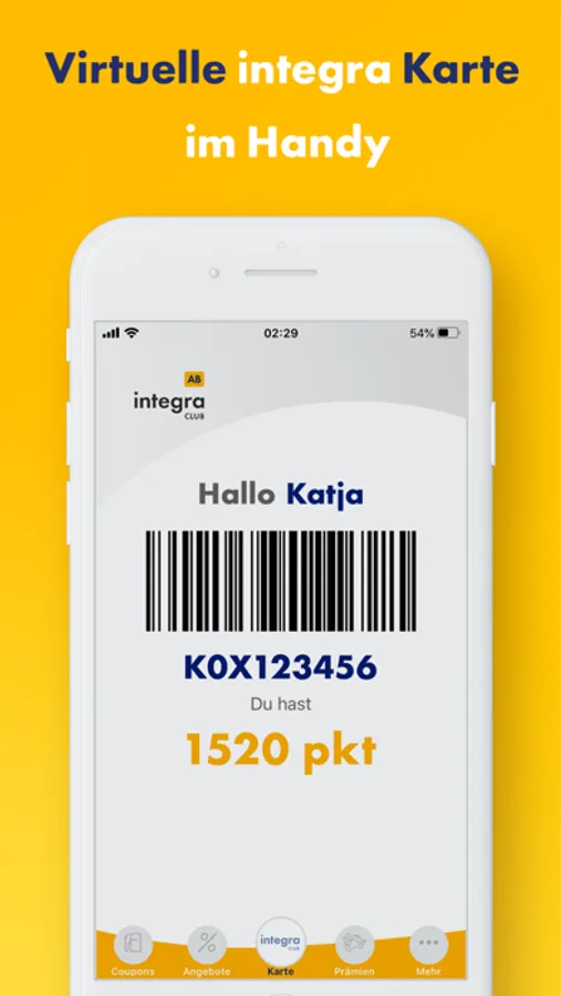 Du darfst nicht mehr die Plastikkarte holen - jetzt hast Du alles im Handy. In jeder Zeit prüfst Du Deinen Punktenstand im Integra Club Konto.