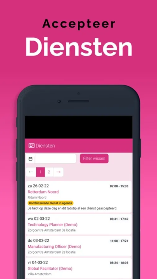 De App is gekoppeld aan het systeem waardoor informatie altijd up-to-date is, via een overzichtelijk dashboard. Bovendien komen belangrijke meldingen, als nieuw beschikbare opdrachten, via een push melding binnen op het apparaat. Zo zie je niets over het hoofd. Ook wijzigingen worden direct zichtbaar, ook in de agenda. Je bent dus altijd op de juiste plaats aanwezig.