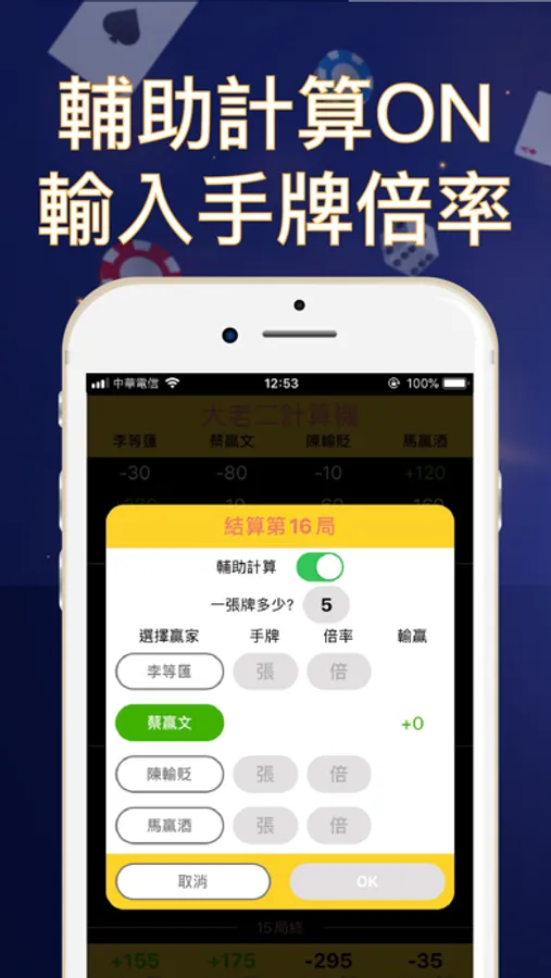 不玩大老二也ok!麻將 / 德州撲克 / 十三支 / 撿紅點,只要需要計算錢都可用