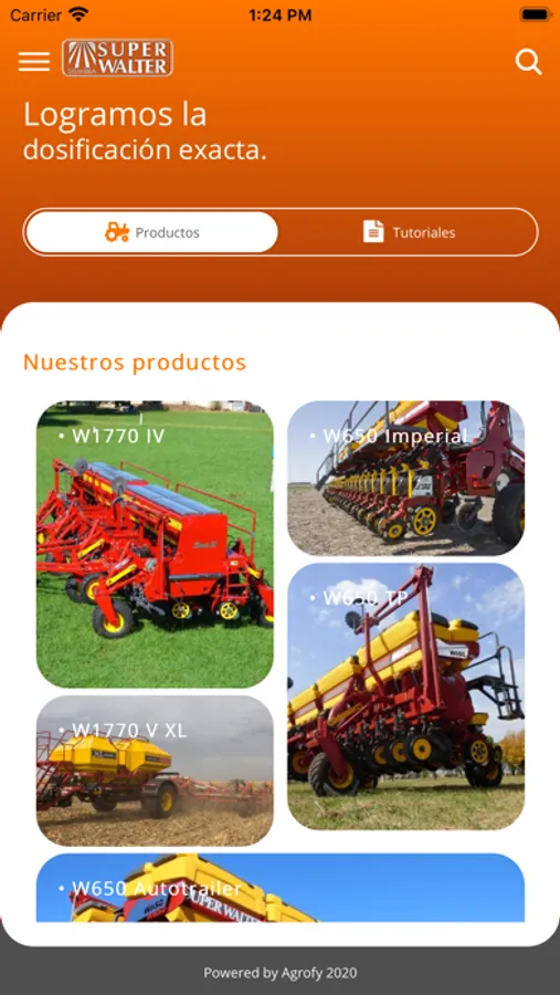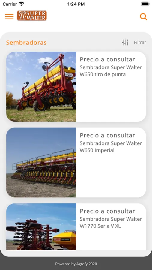 El contenido de ésta aplicación está dirigido a profesionales del sector agrícola. Con la app de Super Walter podrás visualizar nuestras sembradoras, consultar y solicitar cotizaciones.