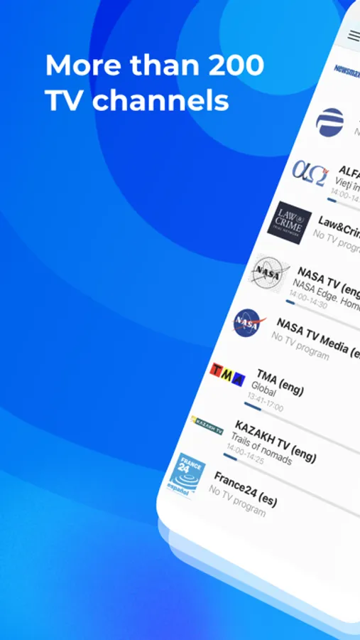 Watch free 80+ TV channels from all over the world in Limex World TV app on your smartphone. Internet connection is all you need. Broadcasting in more than 8 languages (watch TV channels in English, Portuguese, Spanish, French, Romanian, Arab, Farsi, and more)