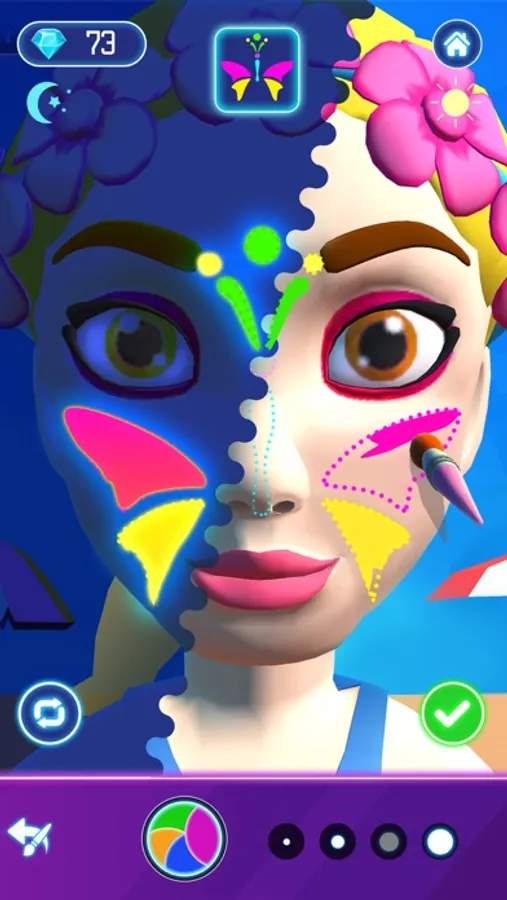 Play this game as a Body Painter and show your talent by painting Glow Paints on the faces and bodies of the party people !!
