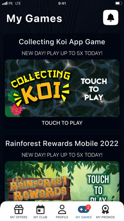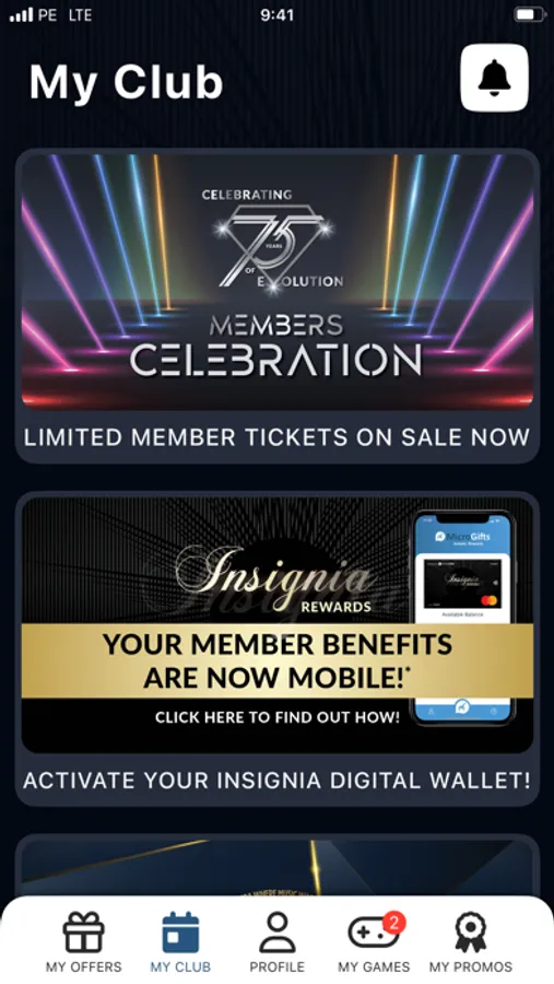 * Be part of exclusive interactive Club Promotions, sent to your phone via push notification for redemption at the venue counter