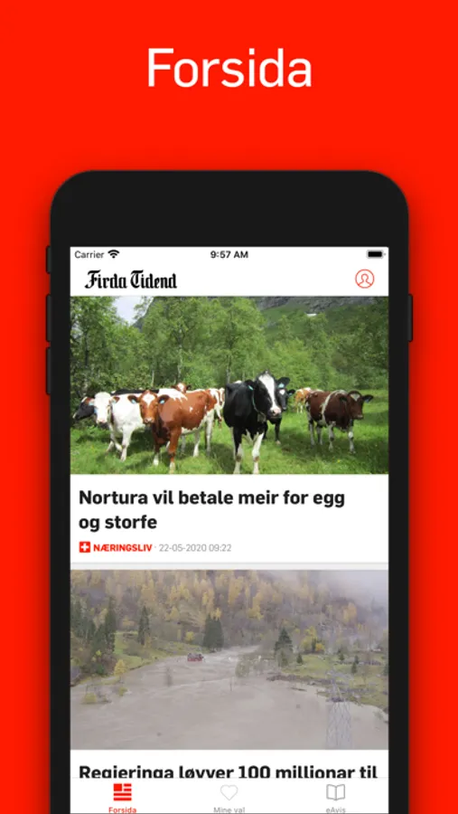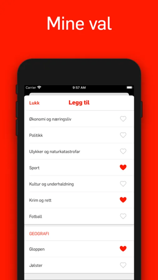I den nye appen vår kan du vera din eigen nyheitssjef. Vel sjølv kva kategoriar, emne og stader du ønskjer nyheiter frå og vil bli varsla om. Du kan òg følgja din favorittjournalist. Hald deg oppdatert om det du sjølv synest er viktig i våre artiklar, bilete og videoar.