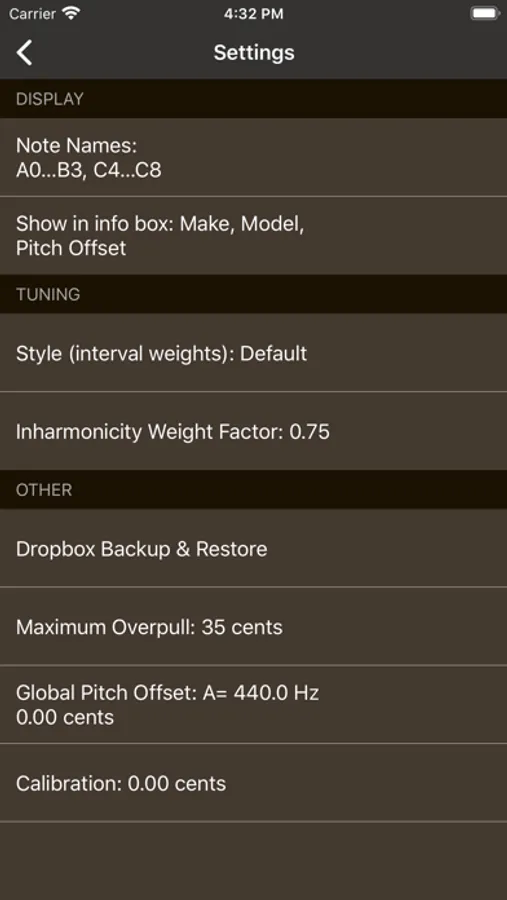 • Save and load tuning files, so a piano doesn't need to be re-measured each time it is tuned