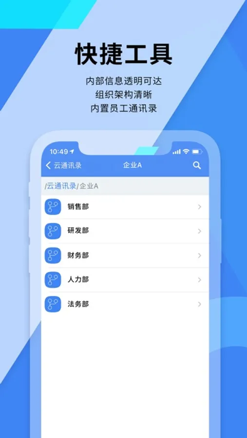 Enterprise employees download the cloud connection client and start mobile office with one click.
