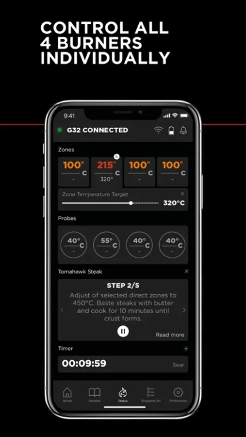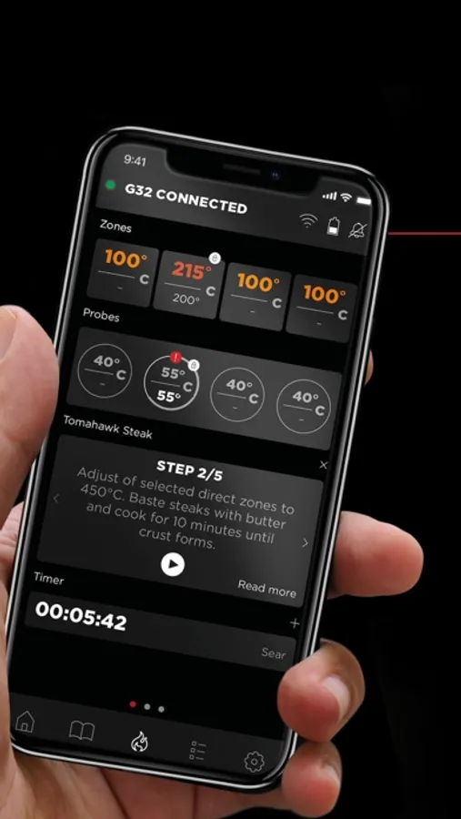 When you connect the app to our G32 Smart, you'll have access to all the above-mentioned features, plus you'll be able to sit back and grill - because your grill will automatically control the burner temperatures. Additionally, you can group burners to be ready for any grilling technique, such as low and slow.