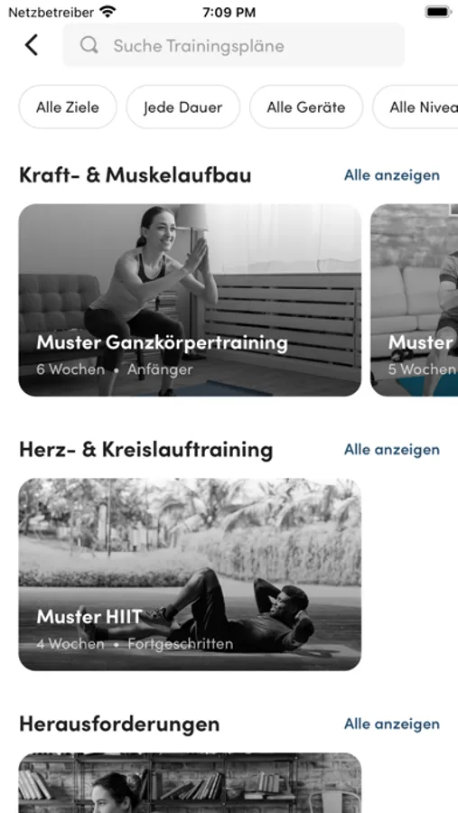 Die Übungsauswahl basiert auf deinen persönlichen Zielen und Bedürfnissen. Dein Leistungszustand ist nicht wichtig: Anfänger, Fortgeschritten oder Profi, wir erstellen deinen optimalen Trainingsplan.