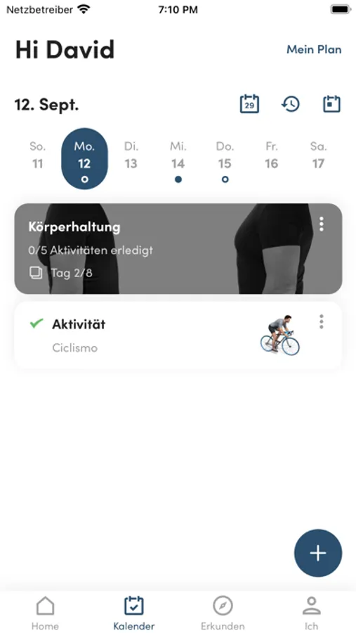 Sie können diese App mit der Apple Health App synchronisieren. Wenn Sie diese Übertragung aktivieren, wird jedes Training aus der Health App automatisch zu Ihrem Aktivitätskalender hinzugefügt.