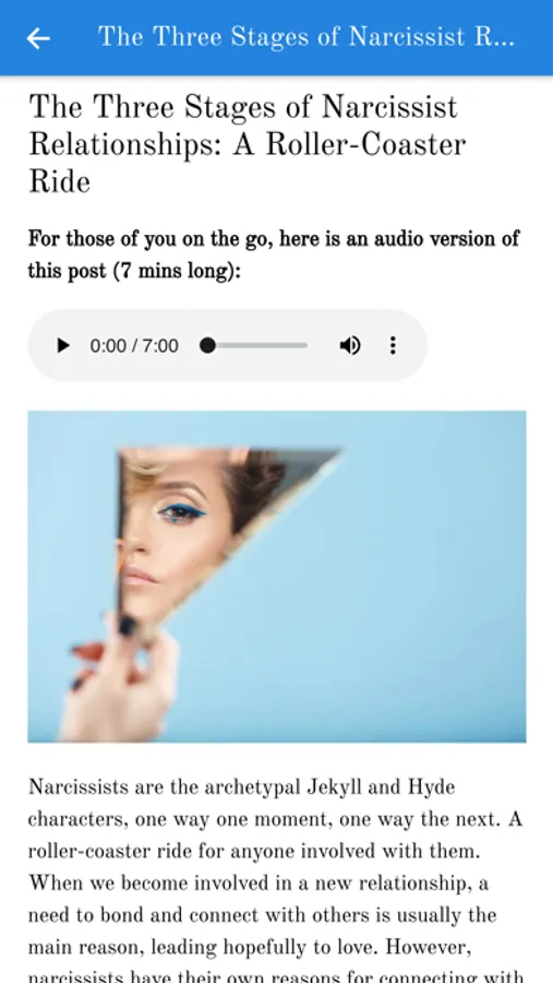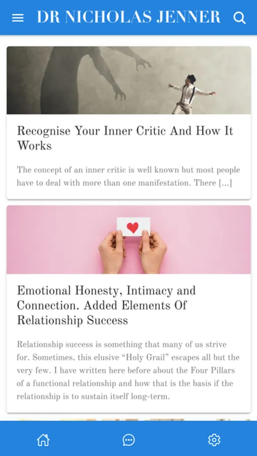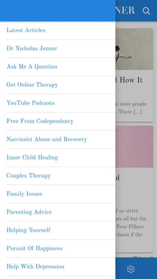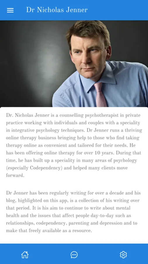 Dr Nicholas Jenner, a counselling psychotherapist in private online practice, has been regularly writing a blog for over a decade on mental health issues. His work, highlighted on this app, is a collection of his ongoing mission to provide free resources on issues that affect people day-to-day such as: Codependency, Narcissist Abuse and Recovery, Inner Child Healing, Couples Therapy, Family Issues, Parenting Advice, Pursuit Of Happiness, Depression, Self-Help and Stress Management. Find also unique podcasts by Dr Jenner where he discusses different mental health issues.