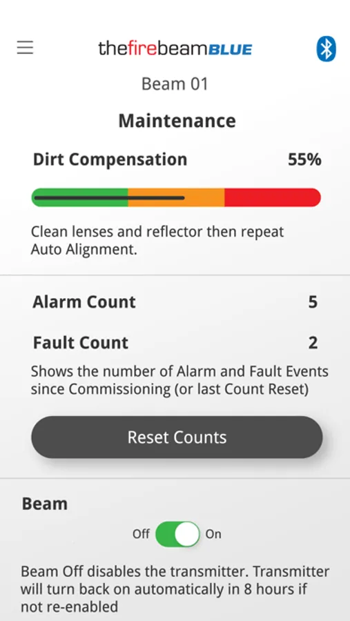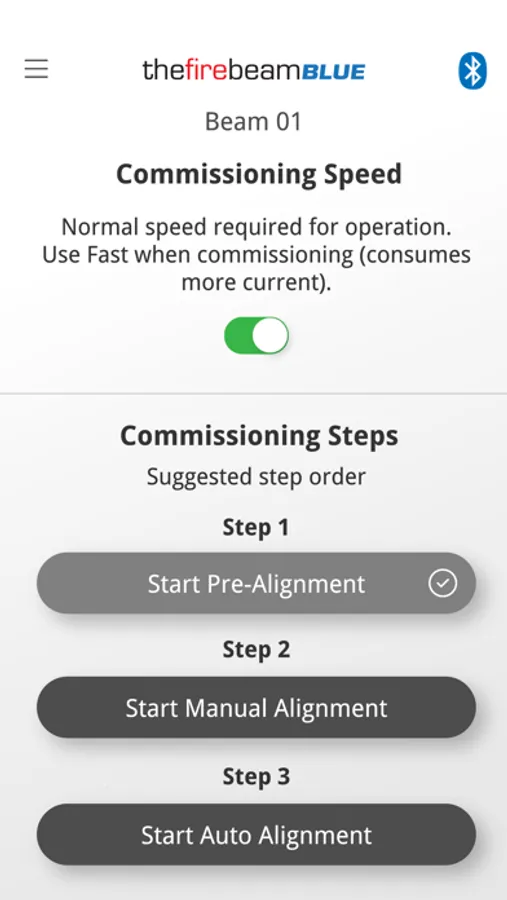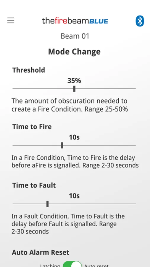 Users familiar with The Fire Beam with quickly understand and enjoy the benefits this Bluetooth App provides. Please note that without this App you will be unable to commission or maintain The FireBeam BLUE beam detector.