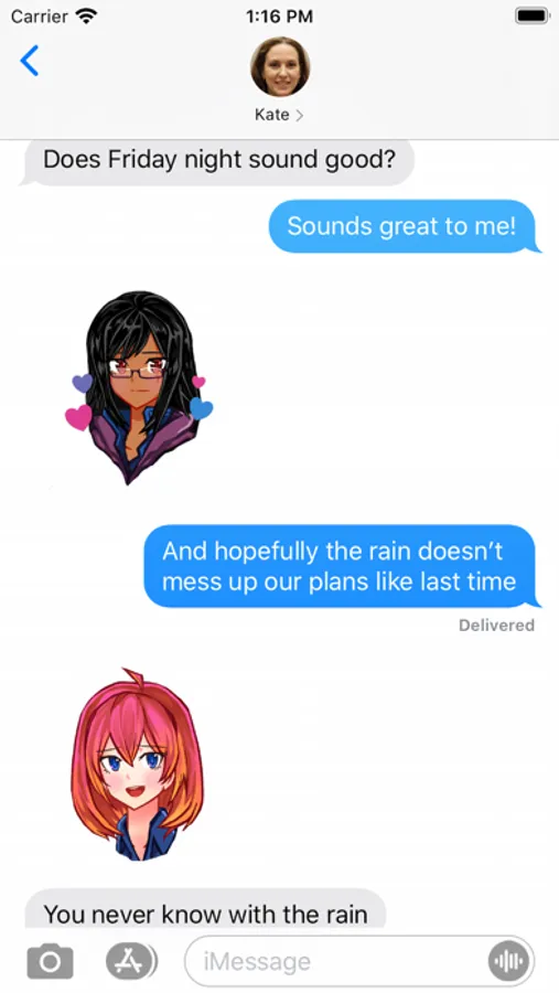 Unstickered is an iMessage sticker pack that provides stickers of characters and elements from the Unscripted visual novel. Send stickers to your friends of your favorite characters!