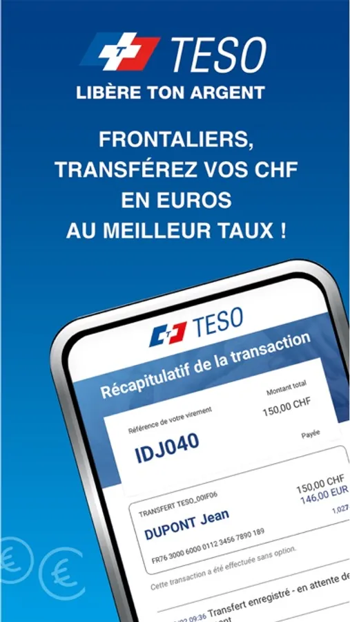 Avec TESO transférez simplement votre argent depuis votre smartphone au meilleur taux en moins de 24h.