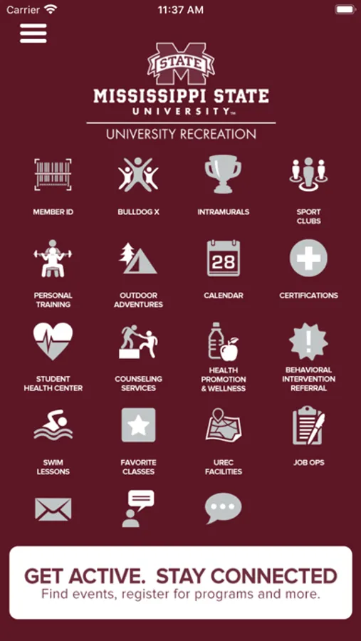 HealthyState is the official Mississippi State University Student Support & Wellbeing app. The HealthyState app includes information about MSU’s Student Support and Wellbeing programs, services, and facilities including Health Promotion & Wellness, the Longest Student Health Center, Student Counseling Services, and University Recreation. Use the app to easily register and connect with MSU’s wellness opportunities and resources such as group exercise schedules, mindfulness sessions, counseling, outdoor trips, swim lessons, sport clubs, intramurals and more. The app is also your key to access the Sanderson Recreation Center.