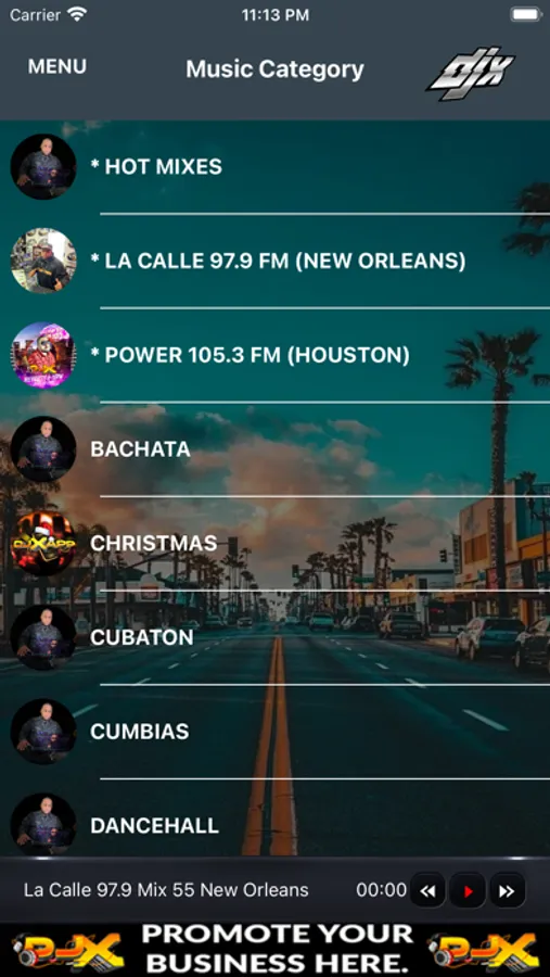 The DJX APP was created for entertainment use for users worldwide. With a large variety of music genres catering all different public. The APP is very user friendly, with a Menu Bar (TOP LEFT) that navigates you thru Music Categories, Live radio shows, TV and more.